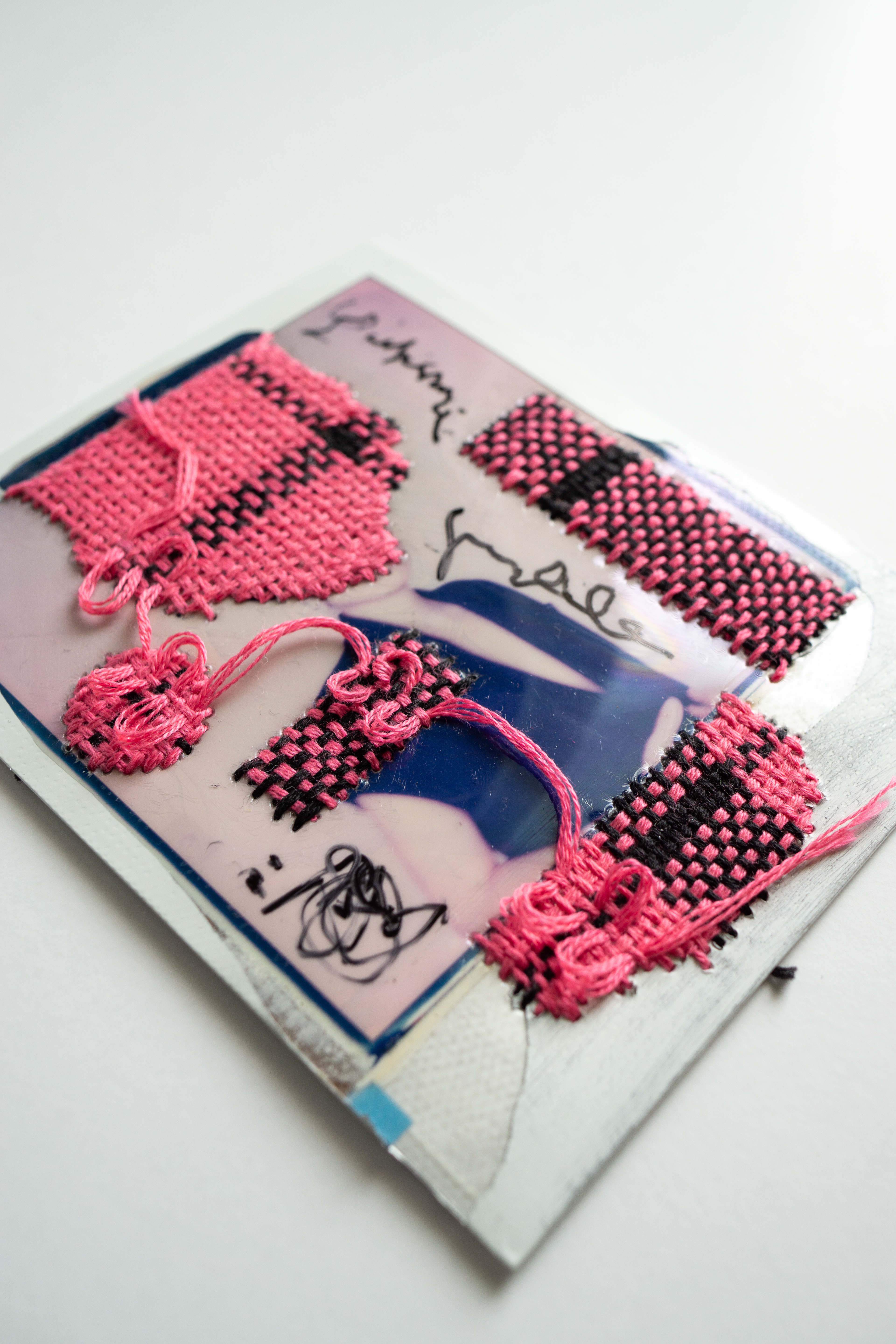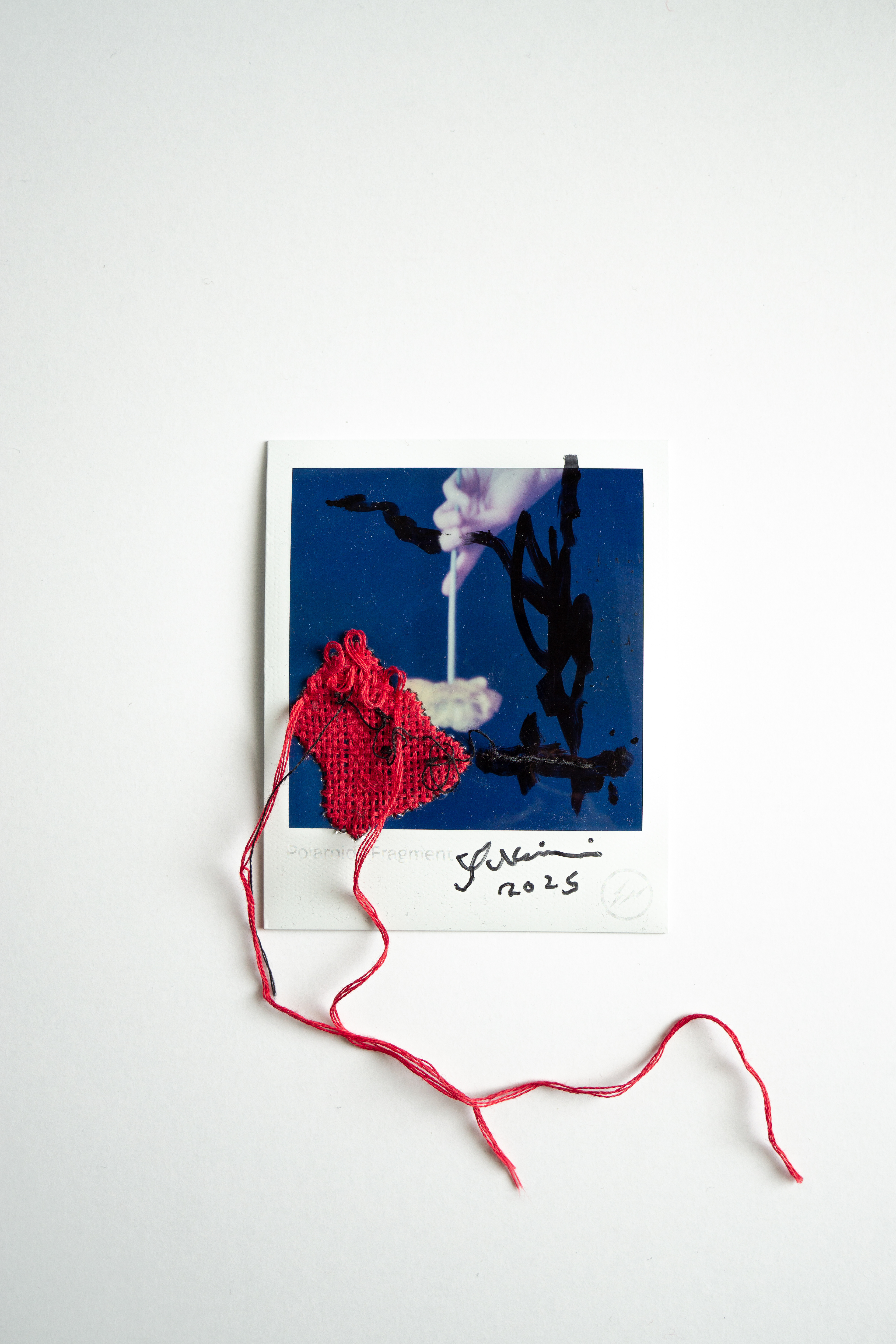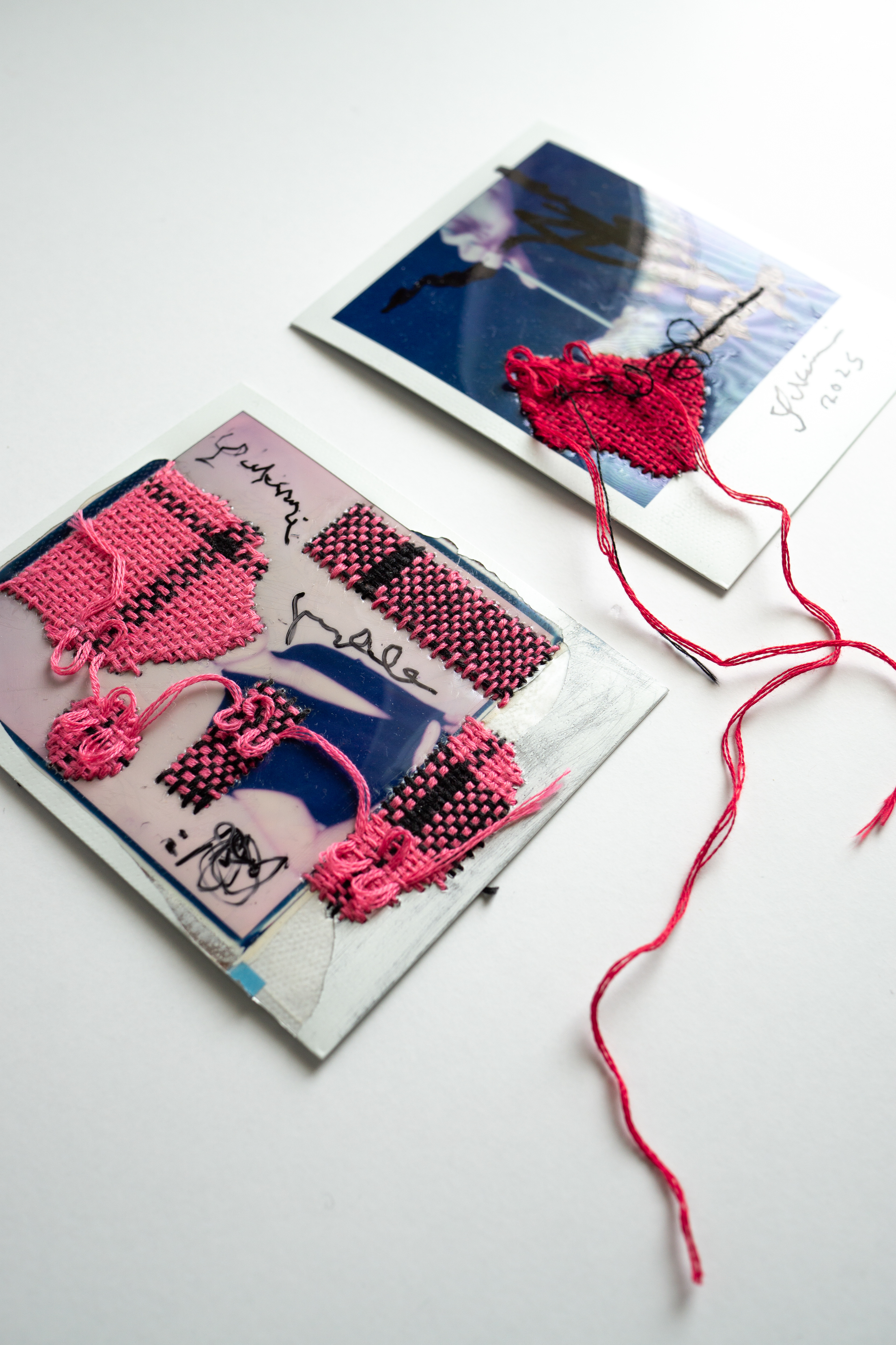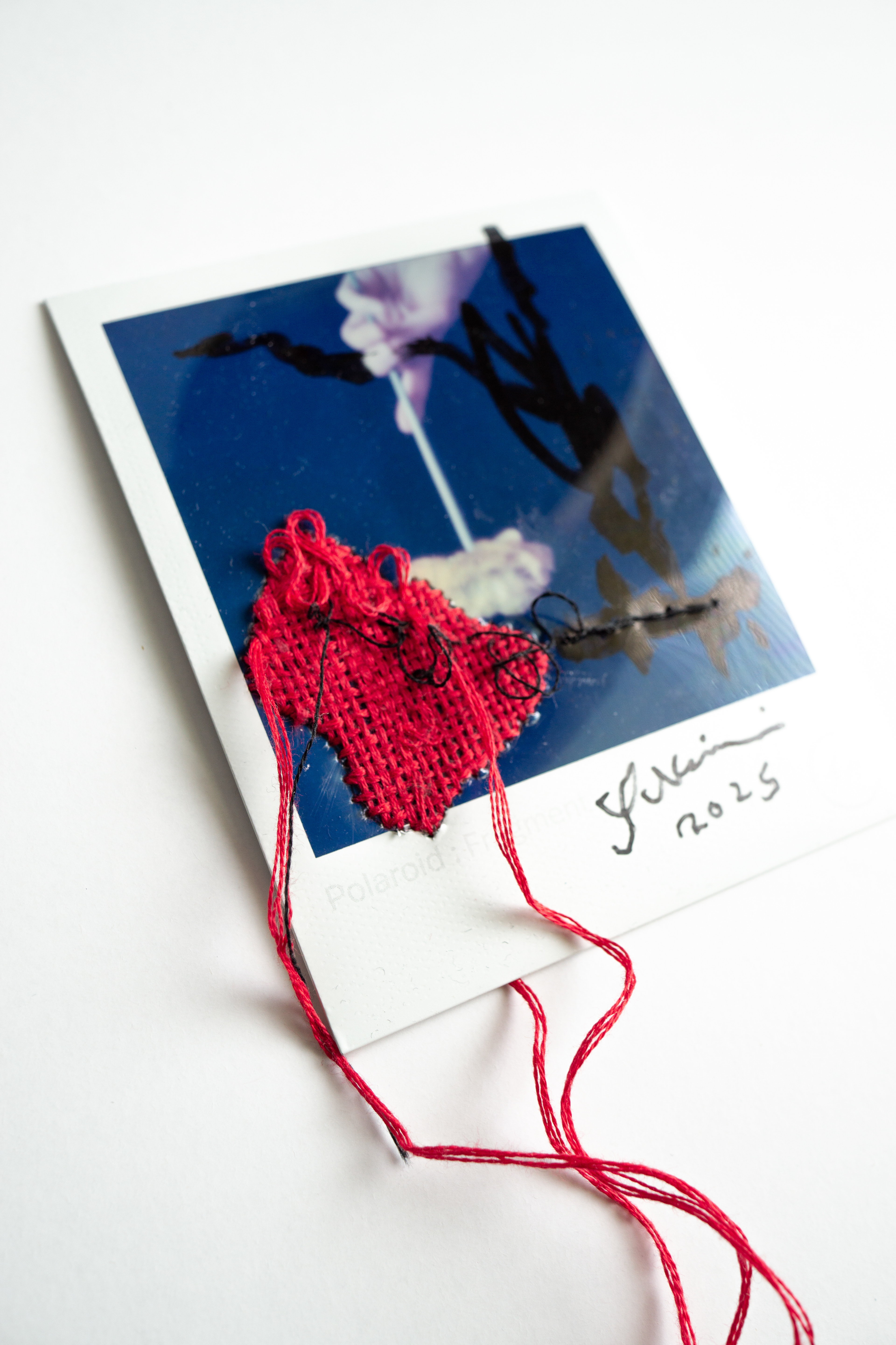 Hand embroidery directly on Polaroid self-portrait taken in 2021