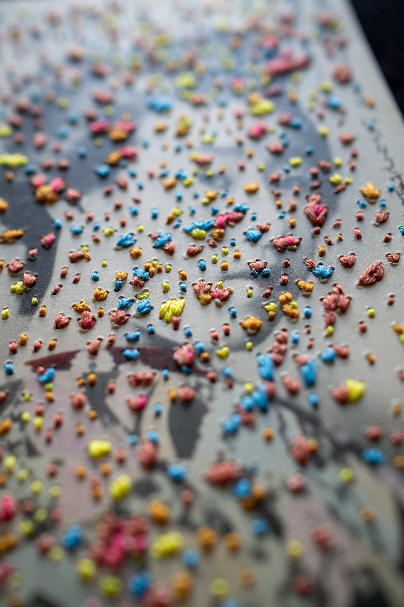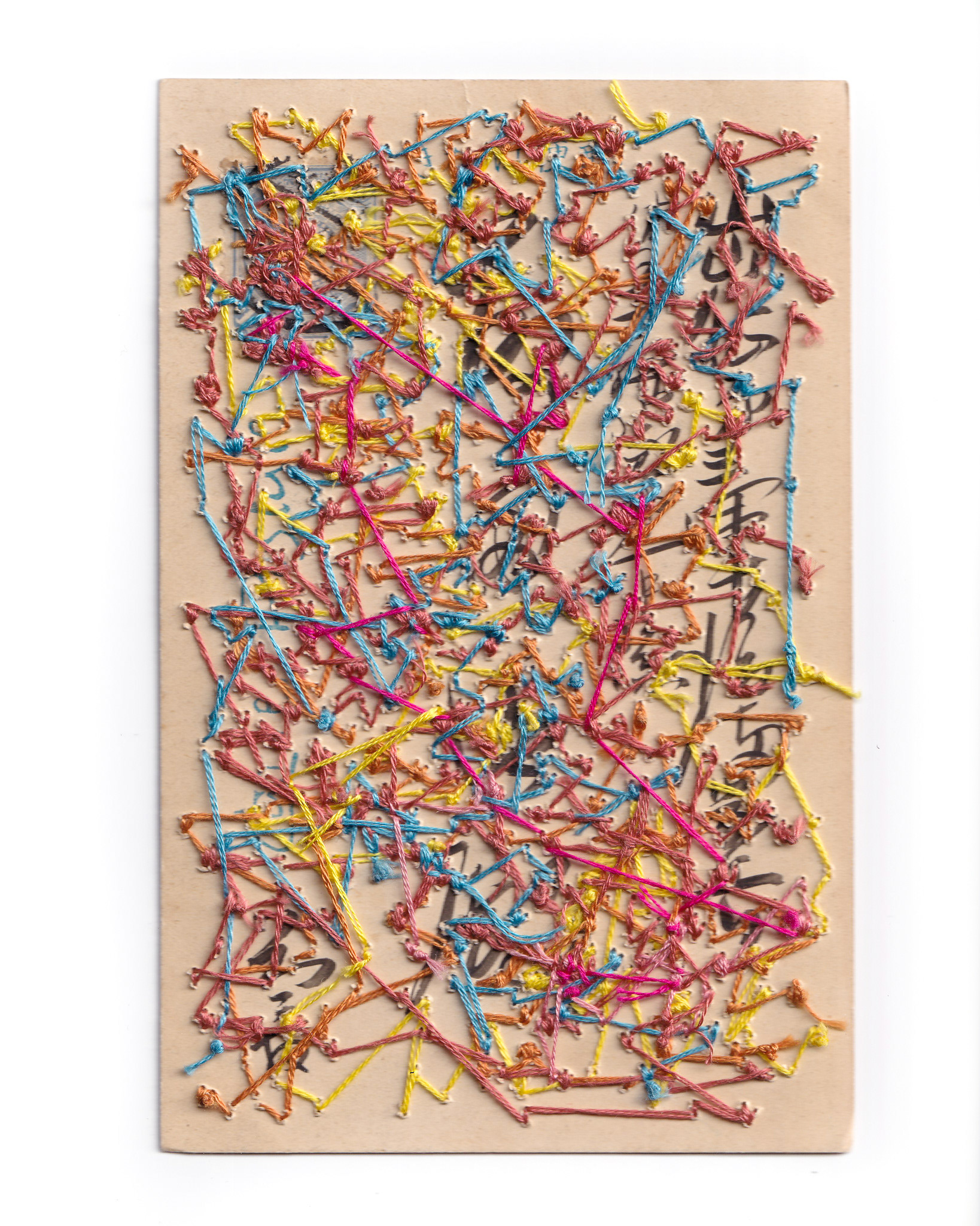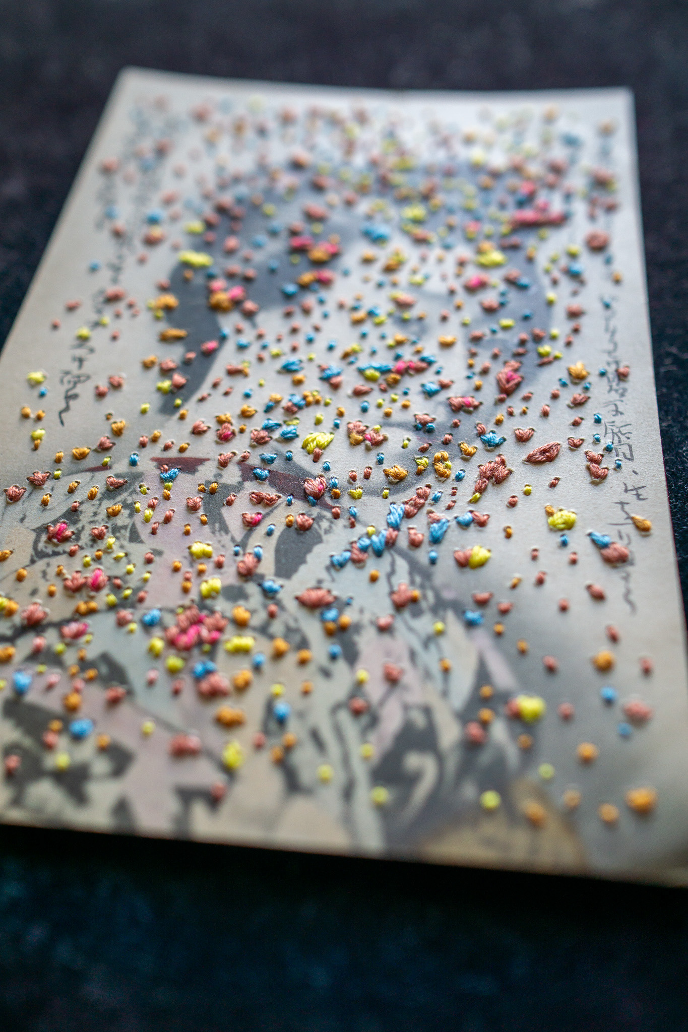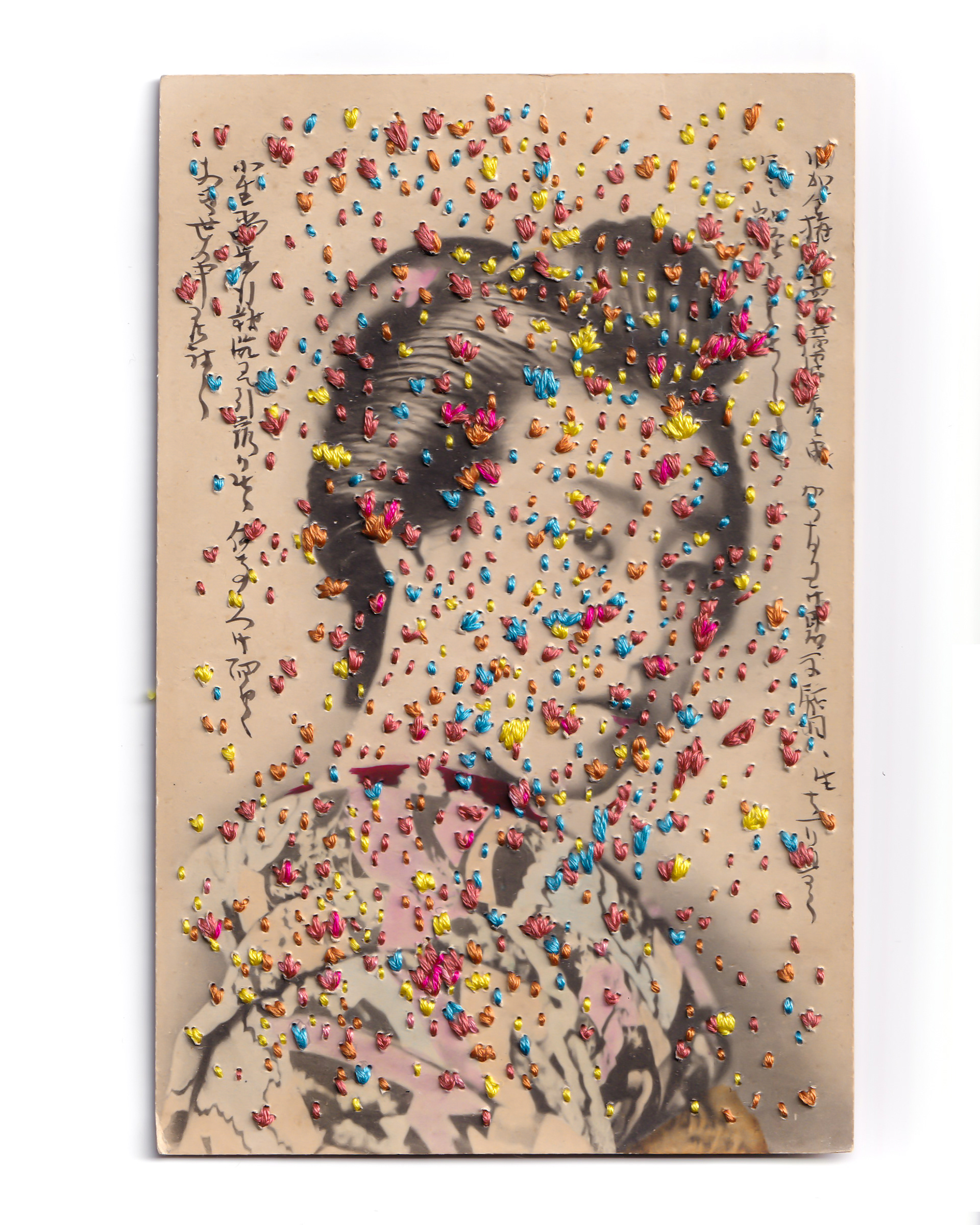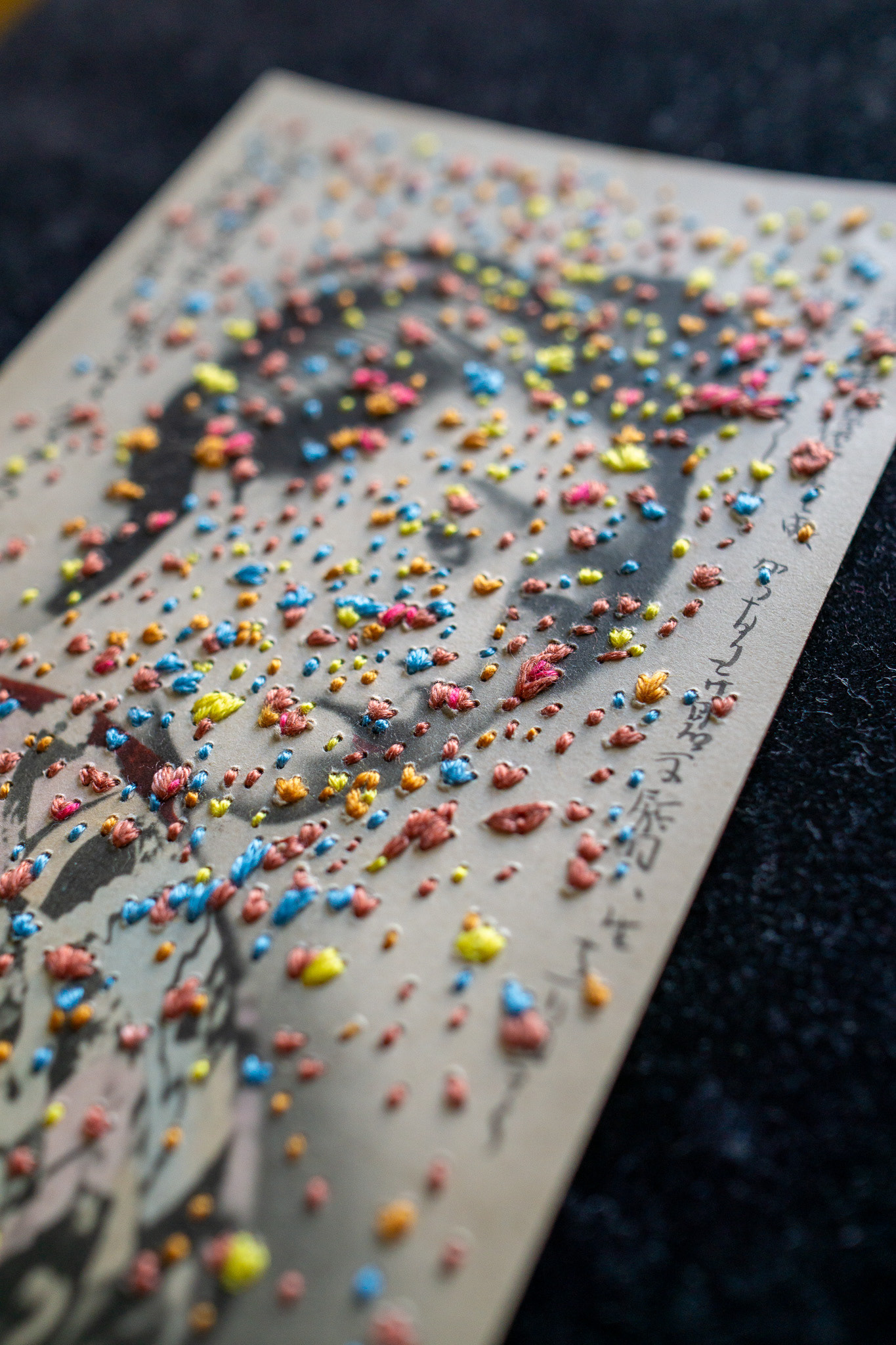 Hand embroidery directly on a vintage postcard